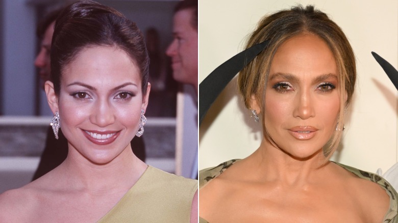 The star adopted a more complimentary makeup palette too. In the earlier shot, she wore a lot of cooler toned products, but her warm undertone foundation, blush, and bronzer in the 2025 image was more complimentary to her olive-toned complexion. Another thing we noticed? Lopez's nose looked slimmer in 1998, though she (or her makeup artist) didn't appear to contour or highlight it back then. But it's not only a change in makeup that's ensured Lopez has stayed looking youthful. And, luckily, we know a few of her beauty secrets.