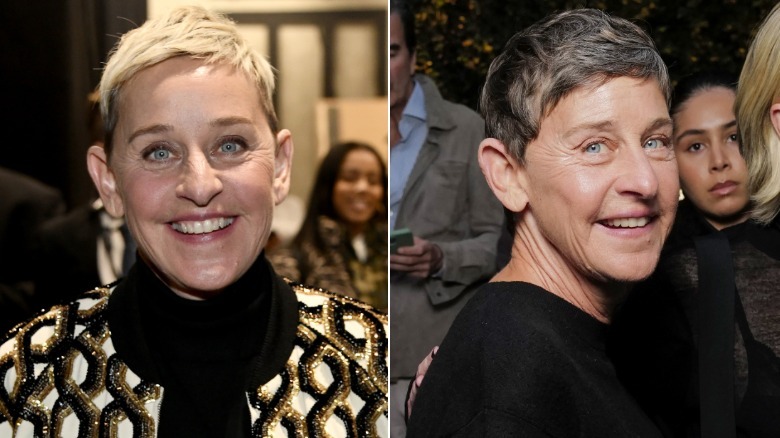 While relocating across the pond marked a major change for the Hollywood couple, the former talk show host has also undergone a notable appearance change since making the move. Though DeGeneres' natural hair color isn't the signature blond she's known for, she briefly departed from her go-to color and went with a dark 'do featuring hints of silver. She started sporting the change as early as January 2025, with the gray color on full display when she attended a gallery unveiling in Paris in September. The color change wasn't permanent, though, as DeGeneres was pictured with a shaggy rendition of her typical blonde color in December. Besides this, the TV personality has seemingly traded in the pantsuits of her talk show days for more casual 'fits, while distinct laugh lines prove she's lived a life full of humor.