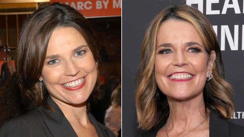 Amid "Today" anchor Savannah Guthrie's inspiring life transformation, she has also undergone a head-turning face transformation. During a 2004 fundraiser for the Robin Hood Foundation, the journalist flashed a big smile and had no problem showing the natural fine lines around her eyes and mouth, which appeared to be the result of years of laughter and smiles. Her complexion was flattered by darker brunette locks that looked similar to the natural hair color Guthrie looks nearly unrecognizable with. Compared to a snap of the star taken 21 years later at the Project Healthy Minds' World Mental Health Day Festival though, what's most striking is how she has barely aged — and seemingly without turning to plastic surgery like other stars who have owned up to their cosmetic tweaks.