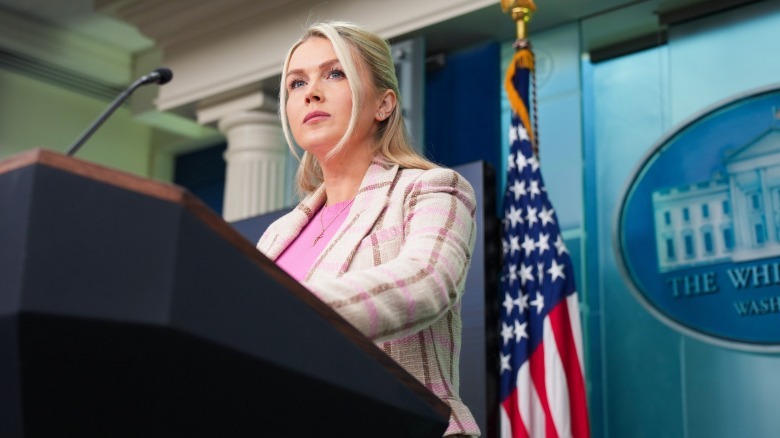 Karoline Leavitt has exhibited some less-than-stellar outfits during her time as the White House press secretary. In 2025 alone, Leavitt had a whole compilation of outfits that totally missed the mark; many were outdated, while others were unflattering on Leavitt because they aged her. Well, she did it again on March 10, 2026 in the James S. Brady Press Briefing Room at the White House. While the primary topic of conversation was President Donald Trump's ongoing strikes in Iran, Leavitt's granny-style blazer and Barbie-pink top did most of the talking.