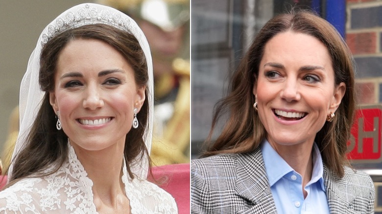 However, there are things that the Princess of Wales has changed about her appearance since her wedding day, particularly when it comes to her beauty and fashion game. Kate Middleton has undergone a total and stunning style transformation since 2011, transforming into an impeccably coiffed royal woman. On top of that, Kate's beauty routine has totally changed over the years. Her makeup is more glamorous and deliberate than it was in her early days as a royal; her brows are thicker and more pronounced, and her eye makeup is consistently darker and more prominent. That being said, Kate also looks stunning without makeup on the rare occasions she decides to go natural. Clearly, Kate continues to move to the beat of her own drum, and that includes aging in a way that empowers her.